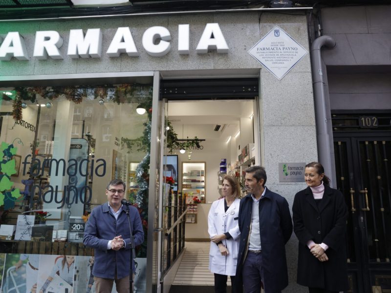 González y Navarro descubren la placa conmemorativa de una farmacia centenaria accesible gracias al Plan Adapta
